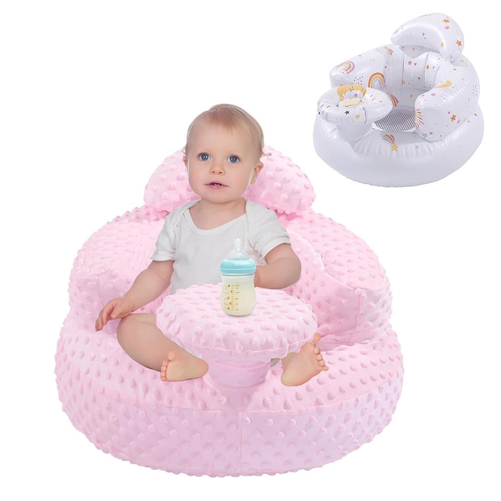 BALAPET Inflatable Baby Seat with Integrated Tray and Back Support for 3-36 Months Toddler, Soft Plush Baby Chair for Sitting Up, Blow Up Baby Floor