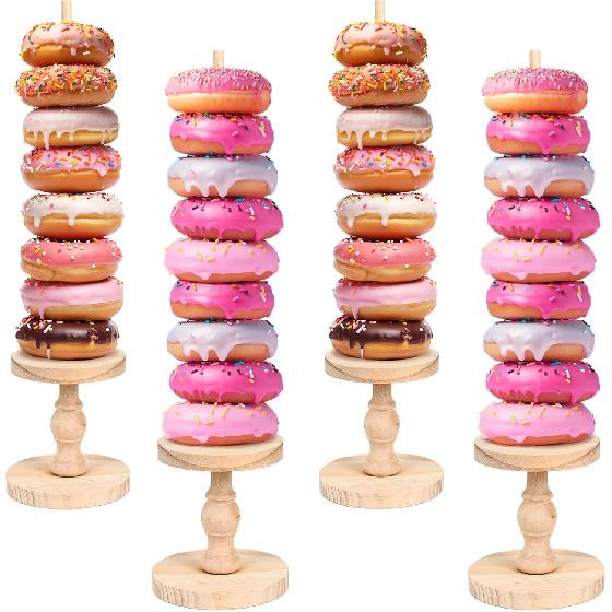 Wooden Donut Display Stand 4 Pack, Detachable Bagel Holder Stand, Dessert Table Tower Display Stand for Donut display Holder for Doughnut Birthday,