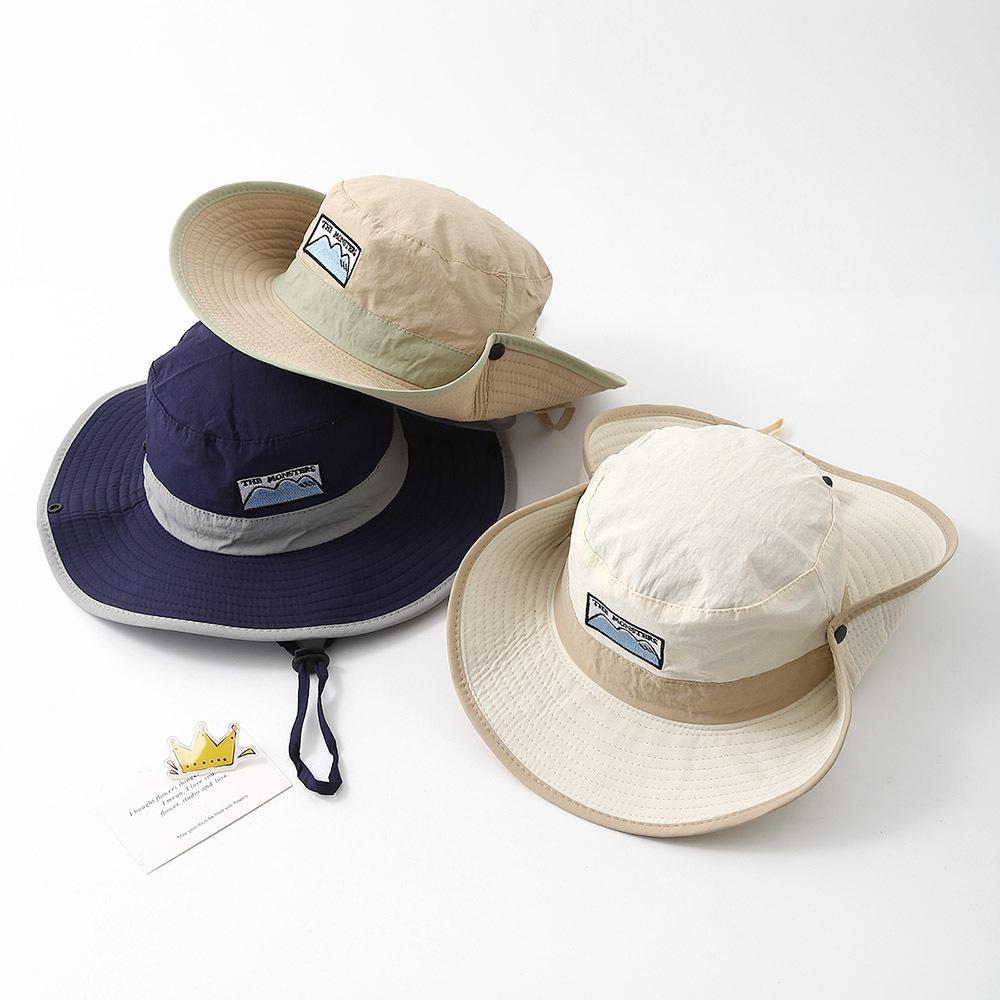 Big Brim Drawstring Children Bucket Hats New Boy Girl Patchwork Quick-dry Cap Panama Sunhat Hiking Fishing Hat Fisherman Caps