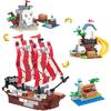3in1 Pirate Ship Building Set with Treasure Island, Toy Pirates Island Building Kit, Outpost with Slide and Seesaw, Creative Playset Pirates Themed