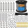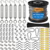 【Package Included】: Include x 50m/165ft Vinyl -coated Stainless Steel Wire Rope, 6pcs M5 Turnbuckle,12pcs Hump handle , 20 Aluminum Crimping Loop, 4 Carabiner , 12 Double rope clamp , 12pcs Anti-wear thimble, 24 Screws,24 pcs Expansion Pipe,50 Black Twist Ties