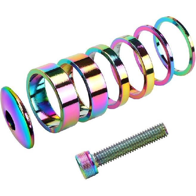 1 1/8 Inch Headset Spacer with Stem Top Cap Bolt Kit Rainbow 28.6mm Fork Tube Washer Cover