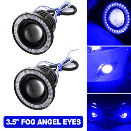 3.5" COB LED Fog Light Projector Car Blue Angel Eye Halo Ring DRL Lamp 2pcs/set