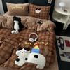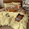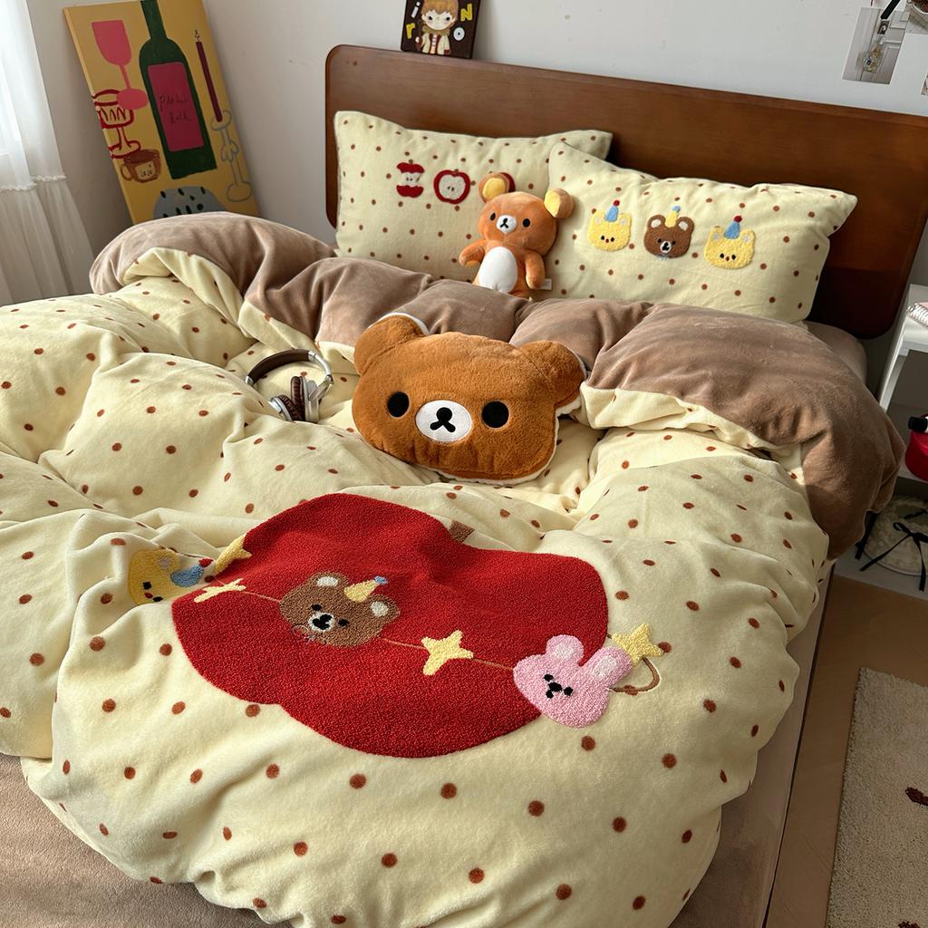 Kawaii Bear Embroidered Winter Bedding Set Thickened Warm Milk Velvet Duvet Cover Set with Sheets Soft Flannel Quilt Cover Kit
