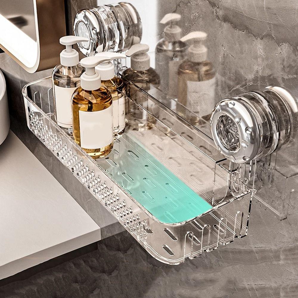 Plastic Suction Cup Shower Rack Transparent Space Saving Draining Basket Waterproof Large Capacity Makeup Organizer Bathroom