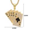 Hip Hop Iced Out Playing Card Pendant Male Gold Color Stainless Steel Rapper Straight Flush Poker Necklaces For Men Jewelry Gift