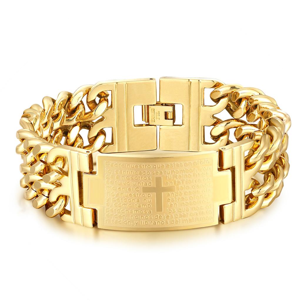 Punk Christian Bible Cross Charm Bracelet Male Gold Color Stainless Steel Cuban Link Chain Bracelets for Men Religious Jewelry