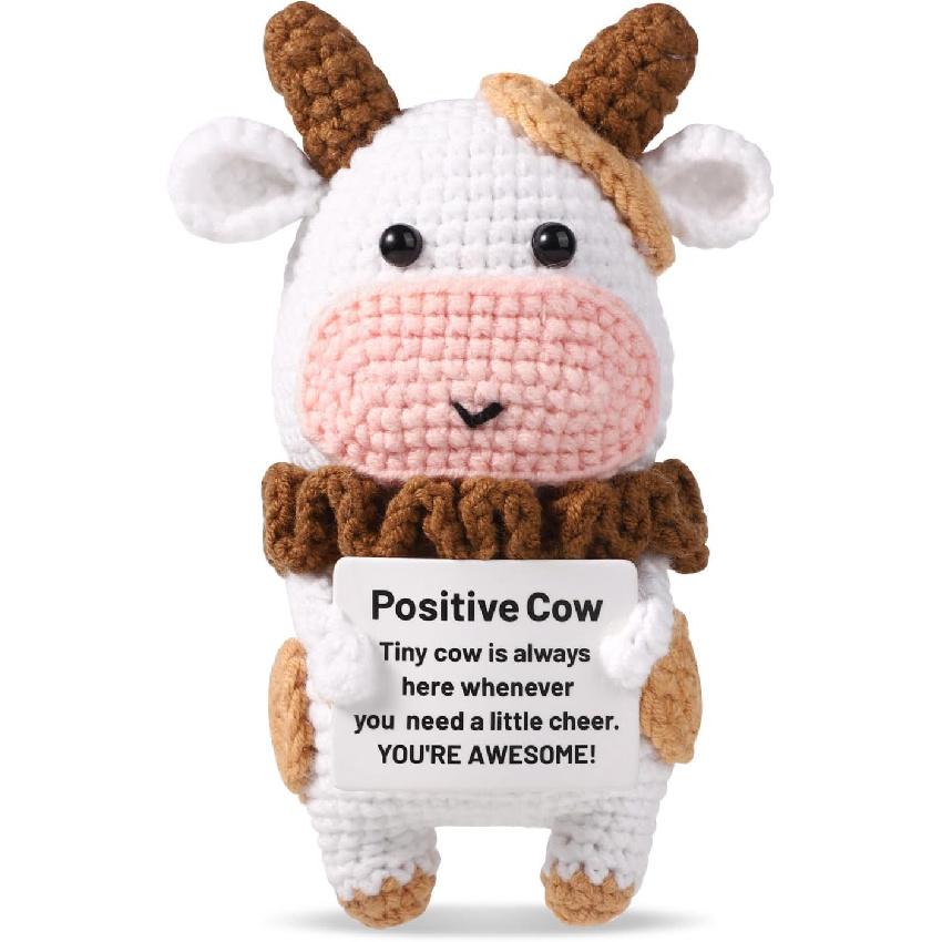 TOYMIS Positive Cow Crochet, Positive Cow Knitted Cow Crochet Cow Pattern Knitted Cow Wool Crochet Doll for Party Decorations Encouragement Gifts