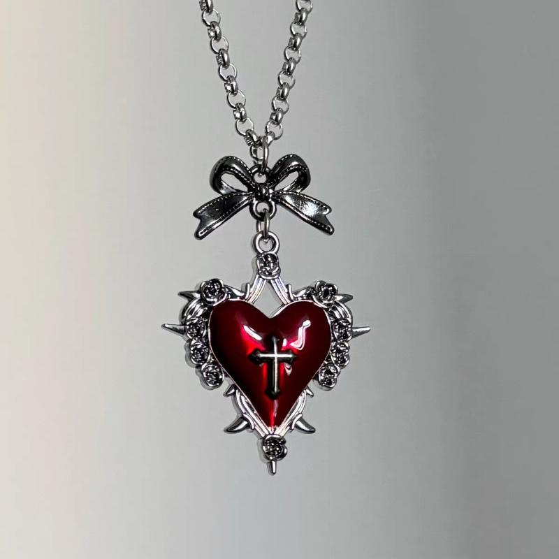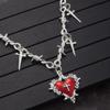Gothic Y2K Thorn Rose Bow Heart Pendant Necklace Women's Retro Vampire Accessories Witch Party Jewelry Gift Choker