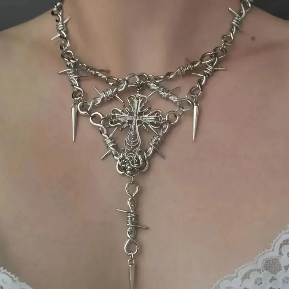 Hip Hop Punk Thorn Rivet Necklace for Man Woman Retro Clavicle Chain Female Y2K Jewelry Hot Girl Choker Accessories