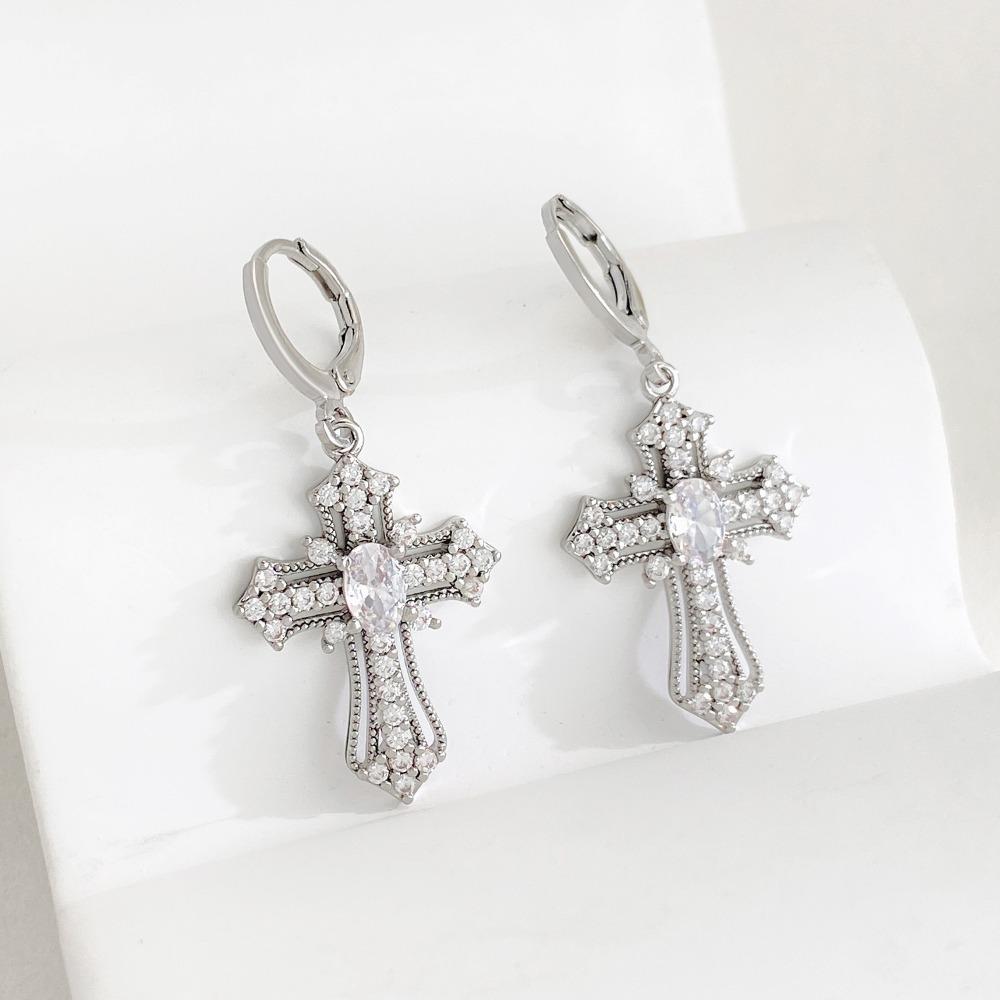 Sparkling Rhinestone Cross Pendant Hoop Zirconium Stud Earrings Men and Women Punk Hip-hop Jewelry Y2k