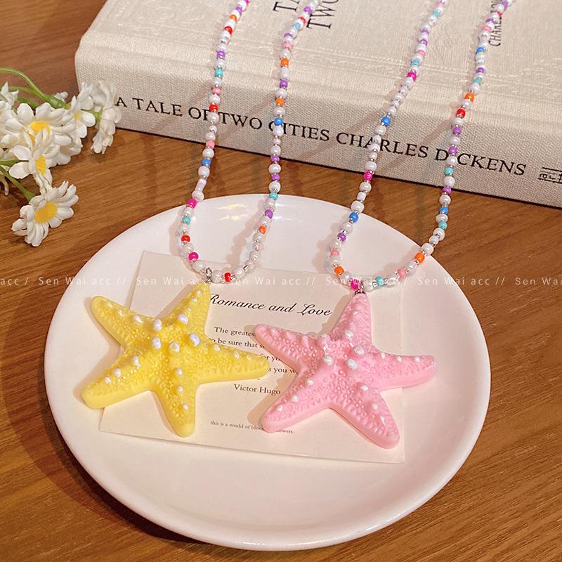 Holiday style color beaded starfish necklace female Internet celebrities with the same long collarbone chain exaggerated match