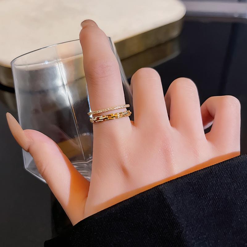 Micro zircon double ring women's light luxury index finger ring Internet celebrity hand