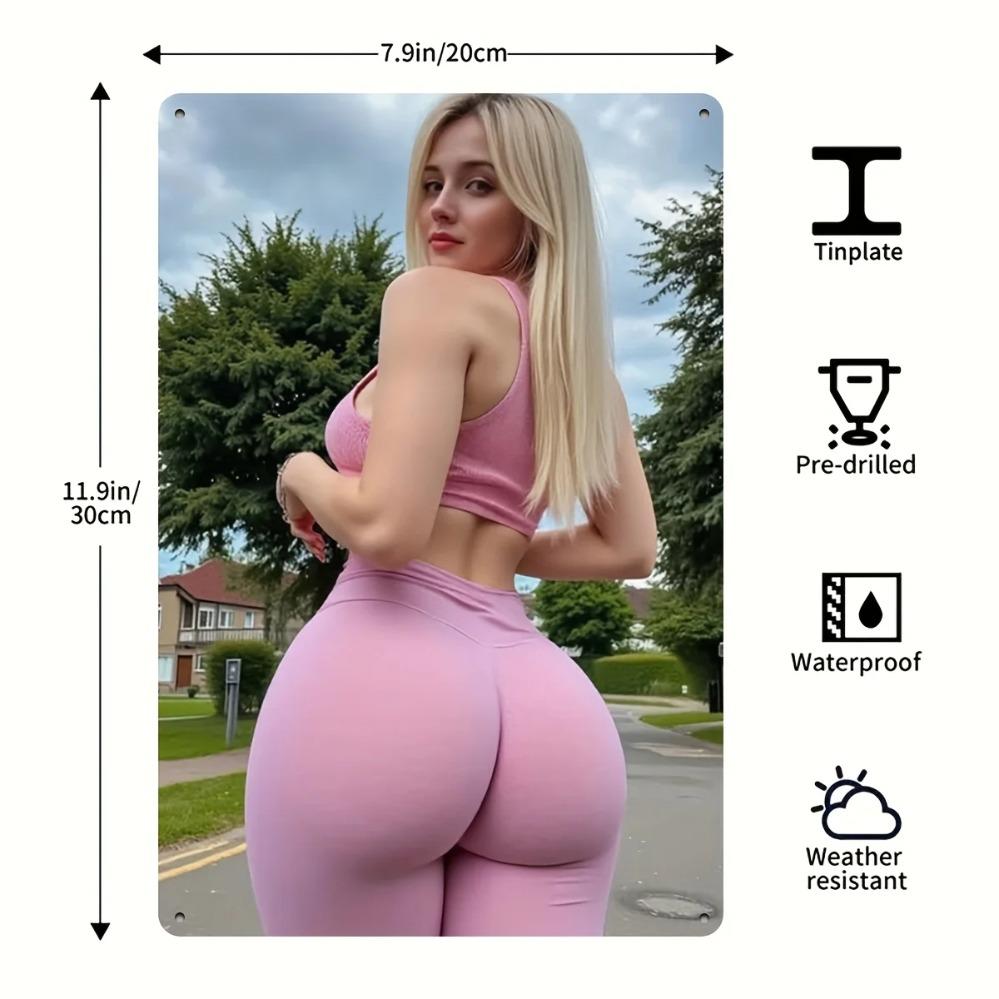 Vintage Tin Sign Wall Art Retro Pinup Woman Metal Decor