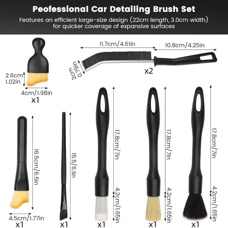🚗【Universal Vehicle Cleaning Gadgets】This Car Detailing Brush Set works perfectly on all vehicles - from cars and motorcycles to RVs and boats. These multi-purpose dust brush handles everything from delicate upholstery and air vents to tough exterior surfaces like wheels and grilles. Ideal for both wet and dry cleaning of every corner.