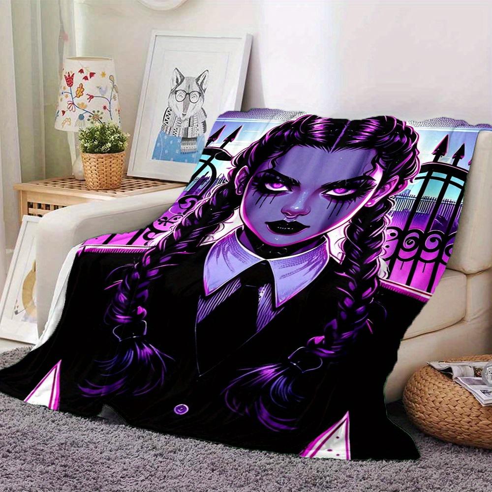 1pc Gothic, Wednesday Digital Printed Flannel Blanket, Super Soft Plush Bed Cover, Multipurpose Quilt for Sofa, Bed, Office,02