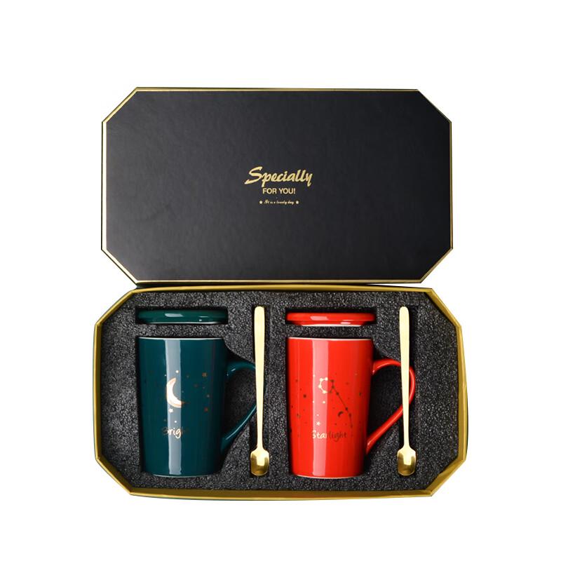 JIN MING LI 12oz Starry Sky Ceramic Couple Mug Gift Set