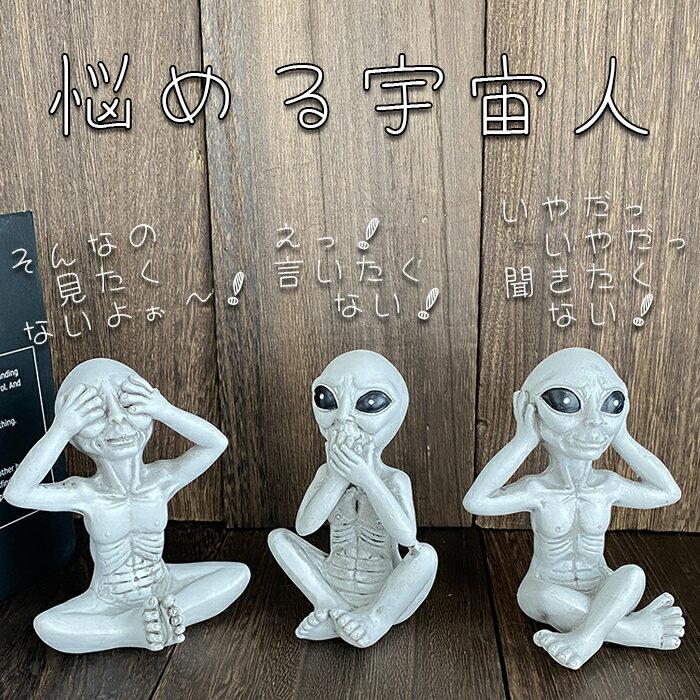 Alien figurines interior decoration. I dont want see that say it hear it. Set three.