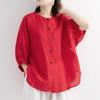 Spring and Summer Cotton and Linen Shirt Women's Lantern Sleeve Retro Literary Blouse Large Size Loose Mid-sleeved Shirt Women