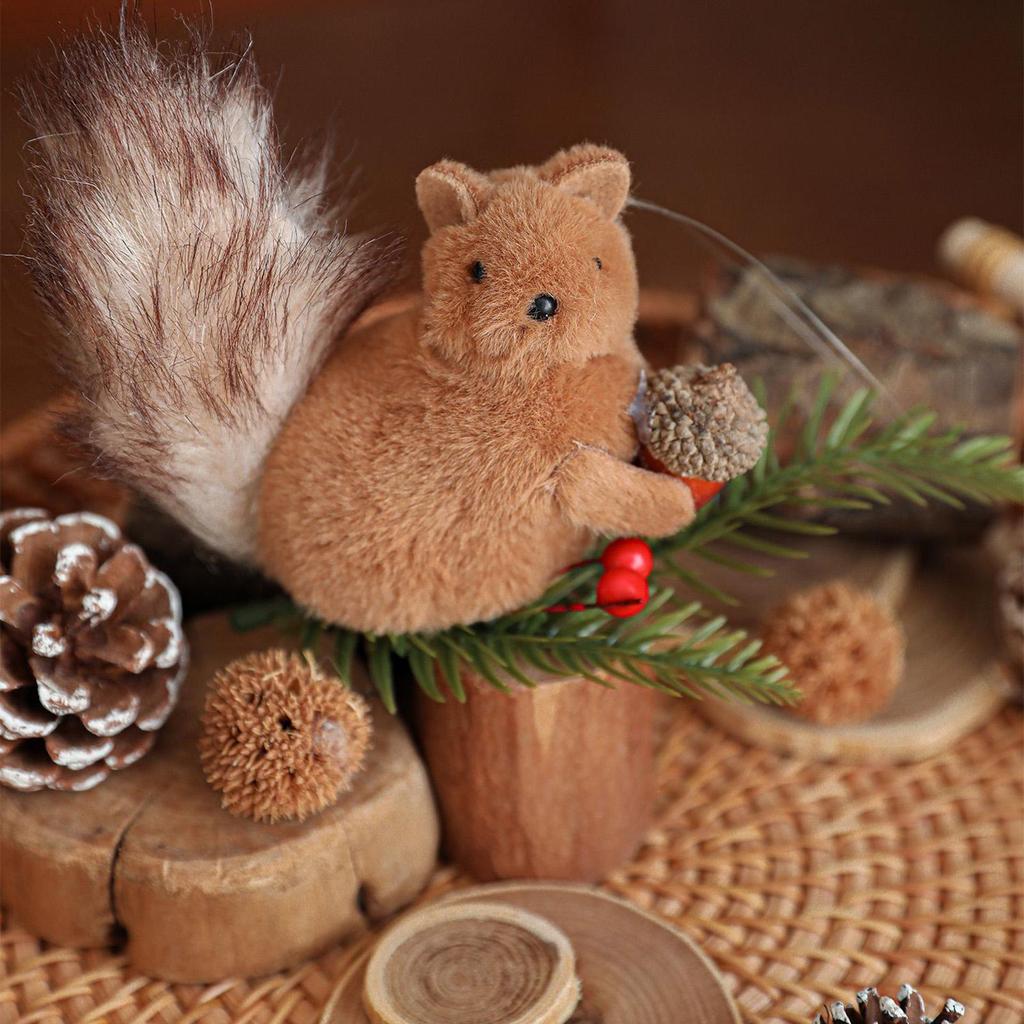Squirrel Ornament Plush Squirrel Festive Charm Realistic Pine Cone Branches Animal Ornament For Window Outdoor Bookshelf Ceiling