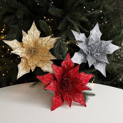 Noel yapay çiçek Sahte Süsler Uzun ömürlü Noel Ağacı Ev Şenlikli Dekorasyon için Parlak Çiçek
