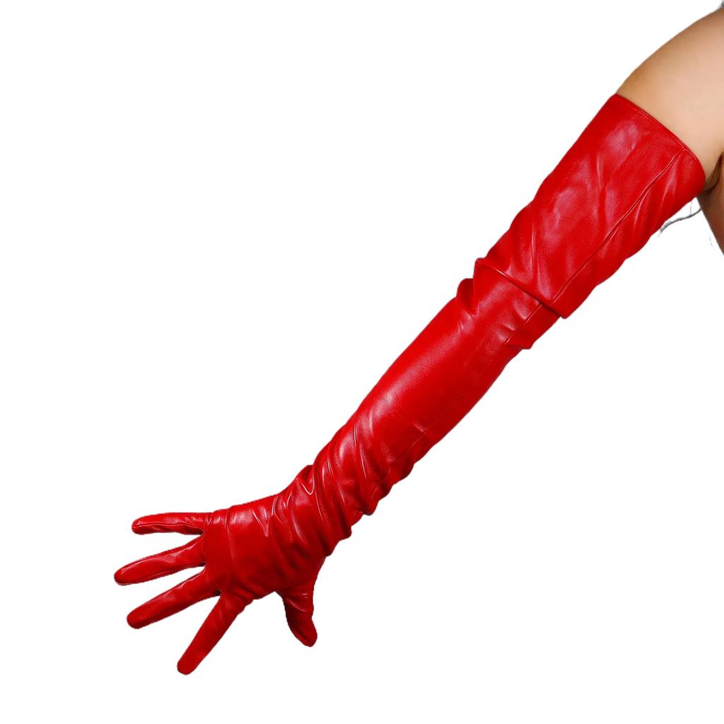 DooWay 70cm Red LONG Leather GLOVES Faux Lambskin Sheepskin Wedding Fashion Cosplay Halloween Costume Evening Opera Glove