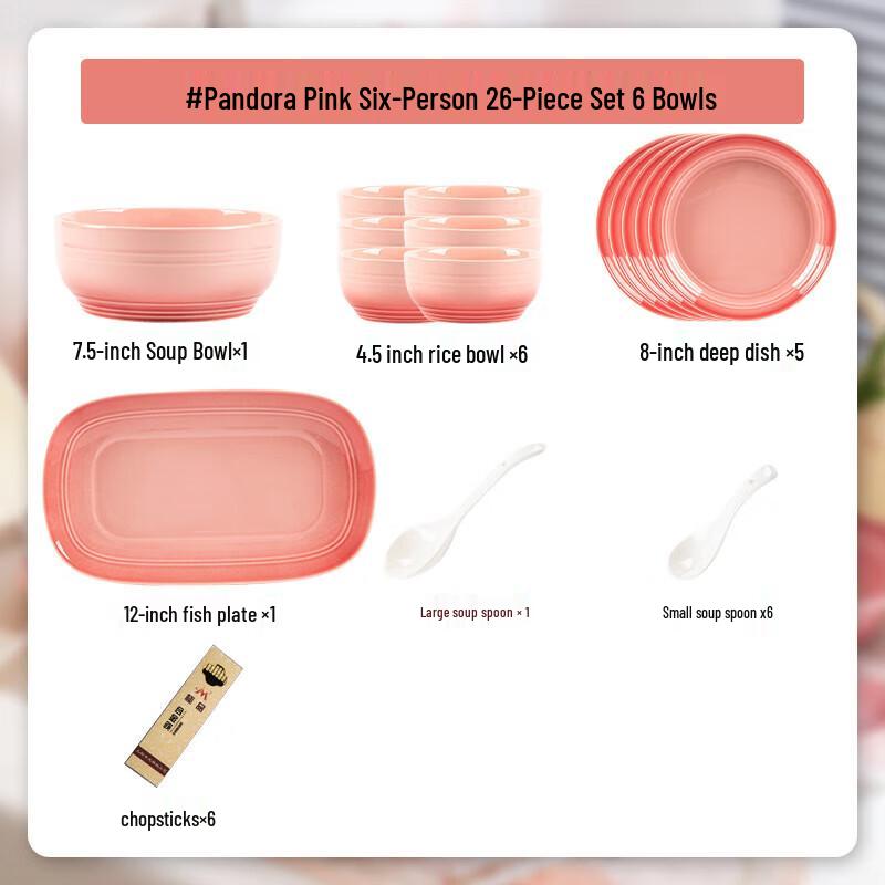 Kangmo Pandora Pink Underglaze Ceramic 26-Piece Dinnerware Set