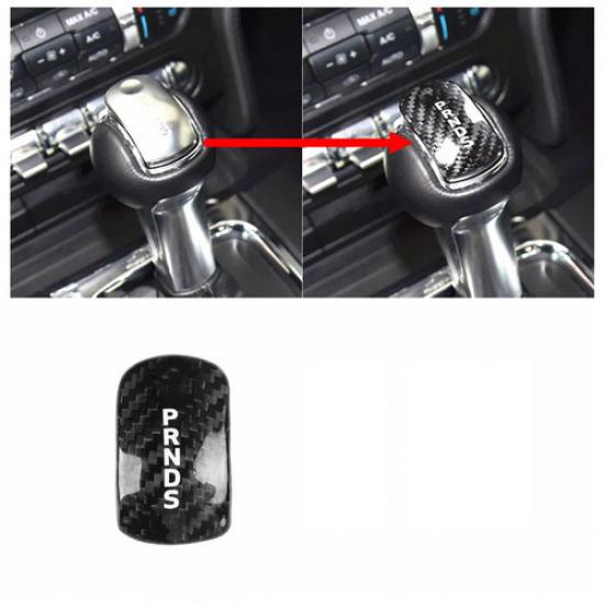 1Pcs Black Carbon Fiber Gear Shift Knob Panel Trim for Ford 2014-2018 Mustang