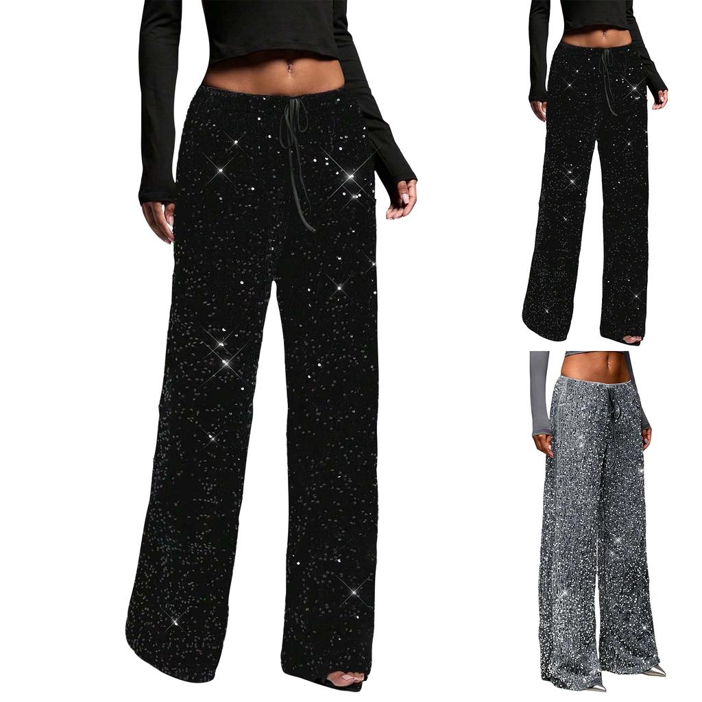 Women's Adult Sequined Fashion Drawstring Slimming Stretch Straight Leg Pants