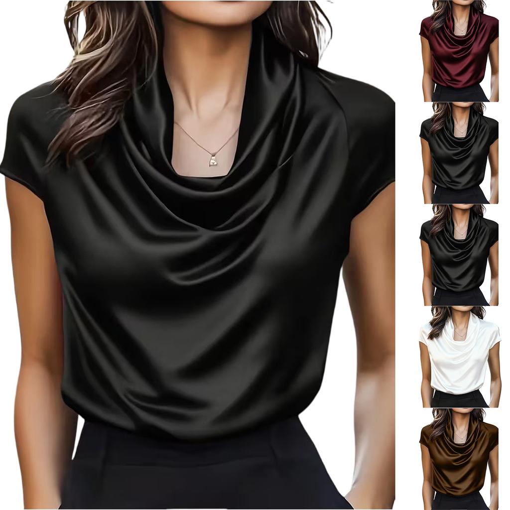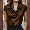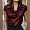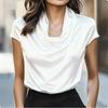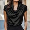 Stylish Women's Short,sleeved Top With A Draped Neckline, Casual And Versatile.