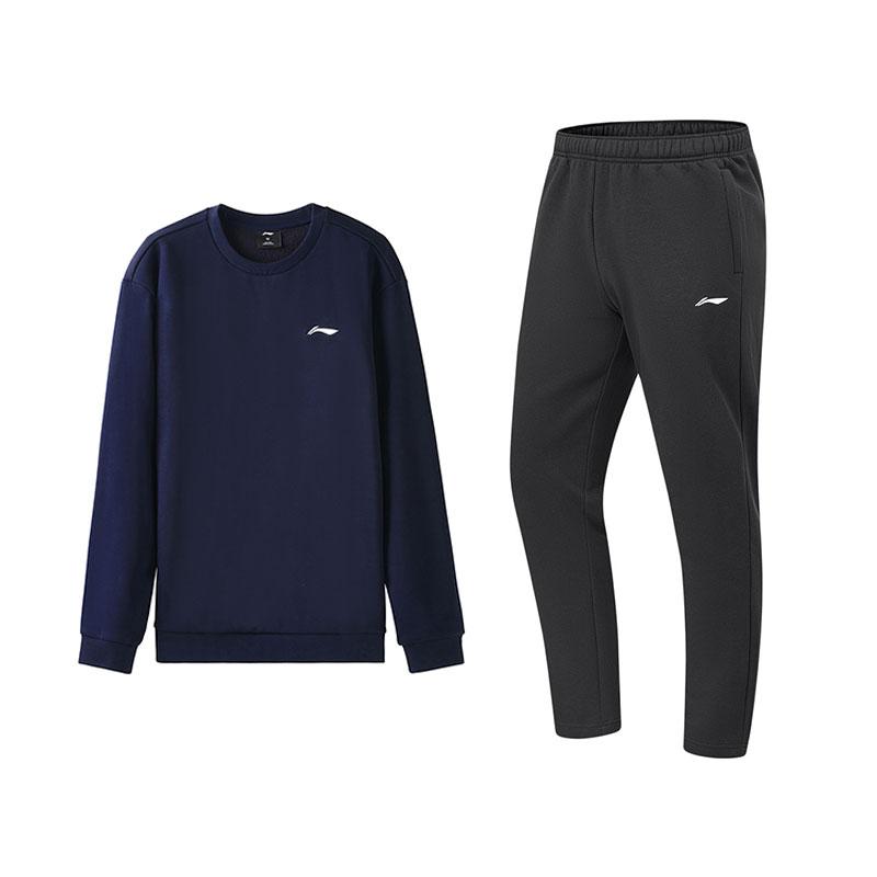 Li Ning Fashionable Comfortable Long Sleeve Sweatshirt And Versatile Long Pants Casual Sports Suit Men suit AWDVG81-4+AKLUA75-5