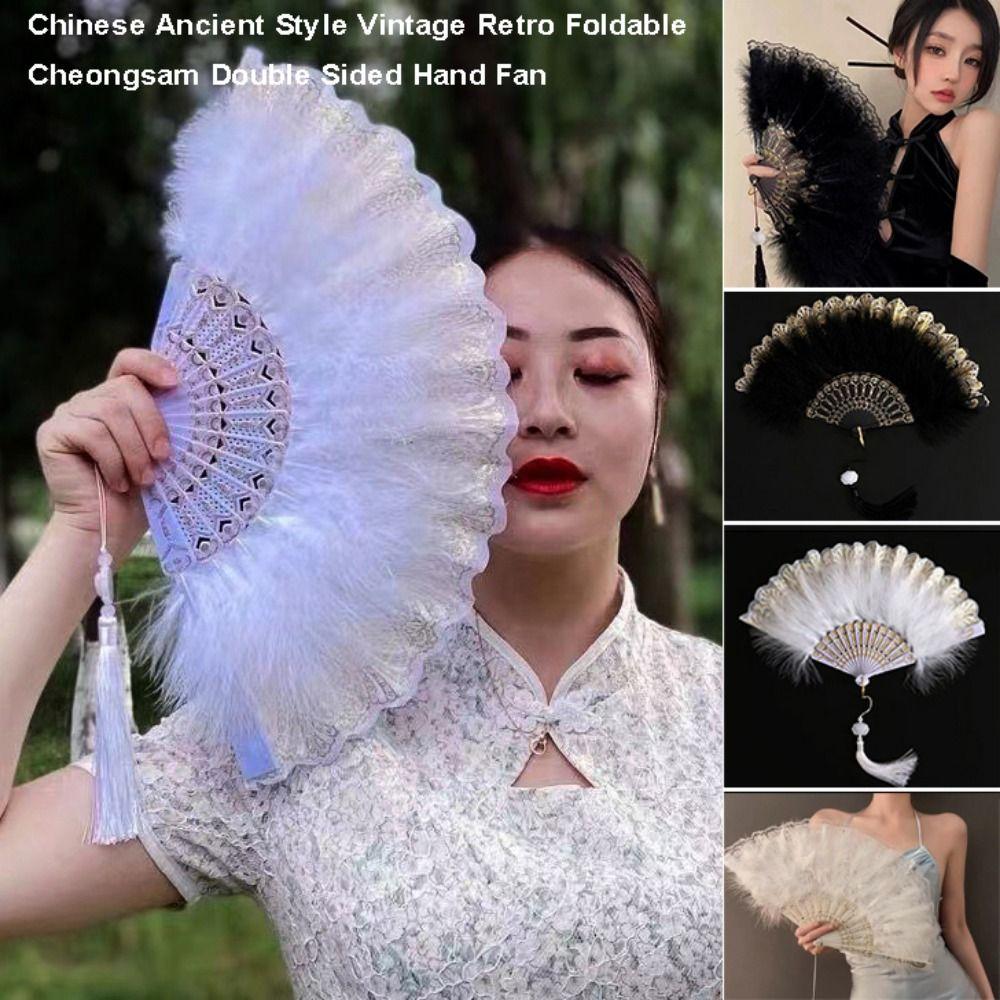 Multicolor Hand Fan Lace Wedding Party Bride Fan White Fur Folding Fan Hand Held Party Decoration