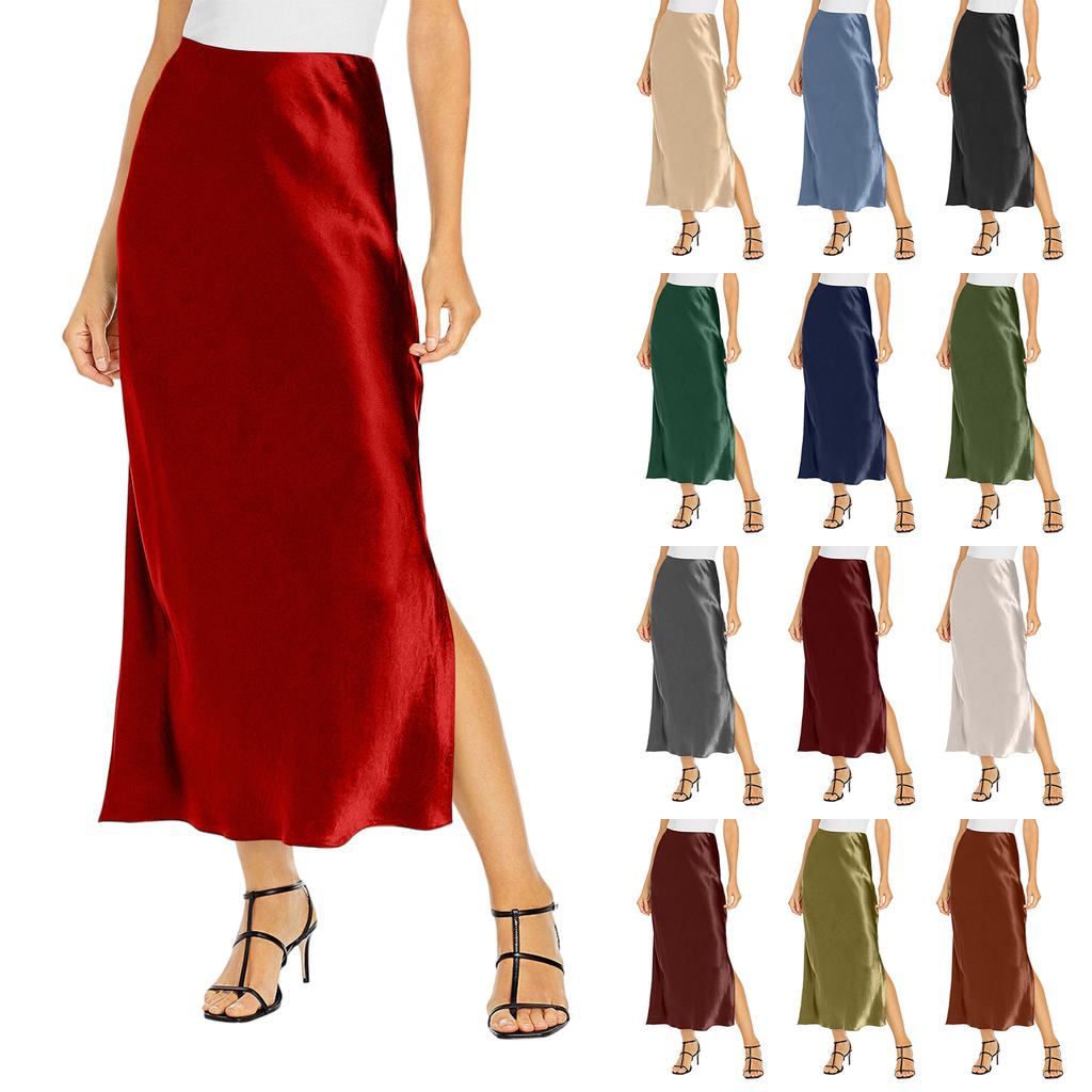 Women's Color Hip Hugging High Waist Slit Skirt