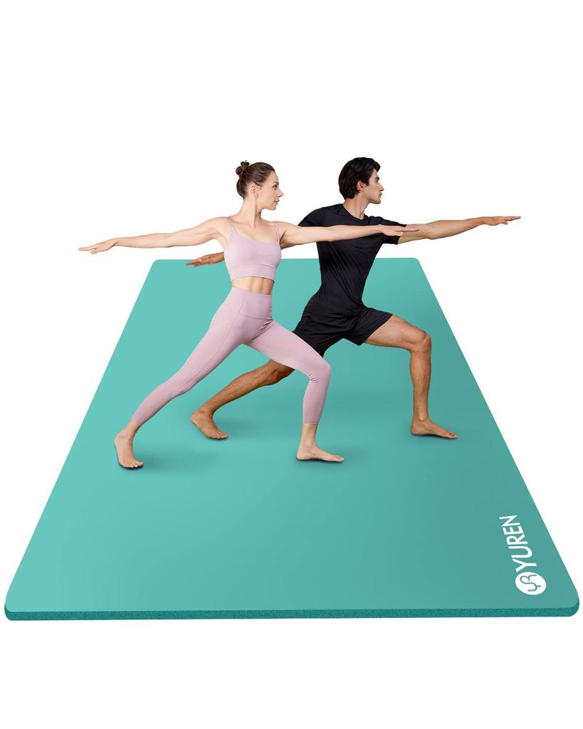 YUREN Yoga Mat, Thick 10mm, Wide 130cm x 200cm, Large Training Mat, High-Density NBR, for Two People, Stretching, Strength Training, Mat with Straps
