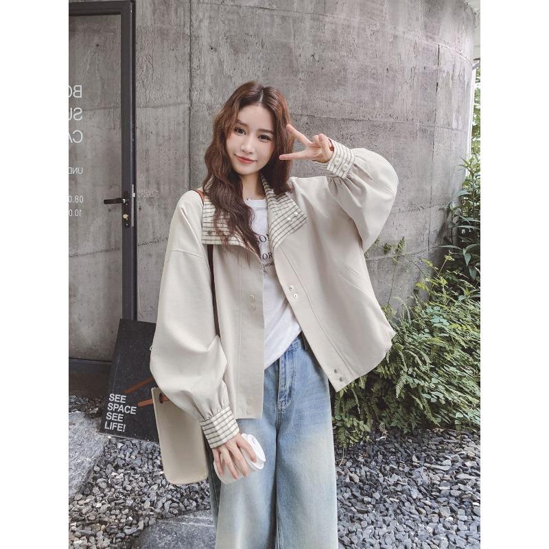 Korean Style Plaid Stitching Fashion Simple Women's Versatile Slim Casual Jacket Top