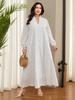 Bohemian Ethnic Style Embroidered Flowers, Round Neck, Lantern Sleeves, Pleated Loose, Slimming, Versatile Long Dress for Women