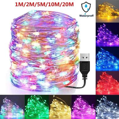 5/10/20M USB LED Dize Işıklar Bakır Gümüş Tel Çelenk Işık Su Geçirmez Peri Işıklar Noel Düğün Parti Dekorasyon