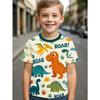 Dinosaur Boys' T-Shirt Colorful Cartoon Print Summer Short Sleeve Tops Fashion Pullover Tees Outdoor Casual Children's Clothing