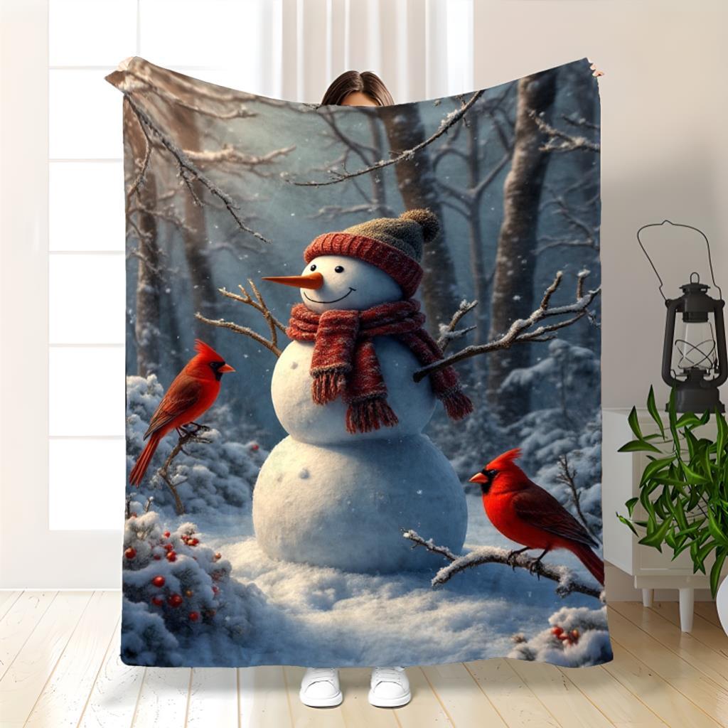 Snowman Cardinal Blanket - Winter Wonderland Soft Flannel Throw