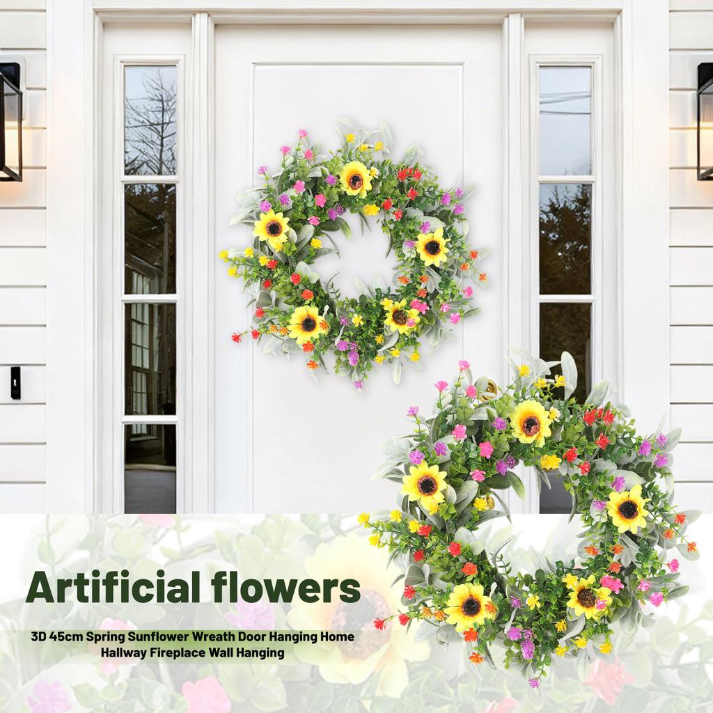 3D 45cm Spring Sunflower Wreath Door Hanging Home Hallway Fireplace Wall Hanging