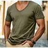 Men's Casual -color -jute V-neck Short-sleeved T-shirt Top