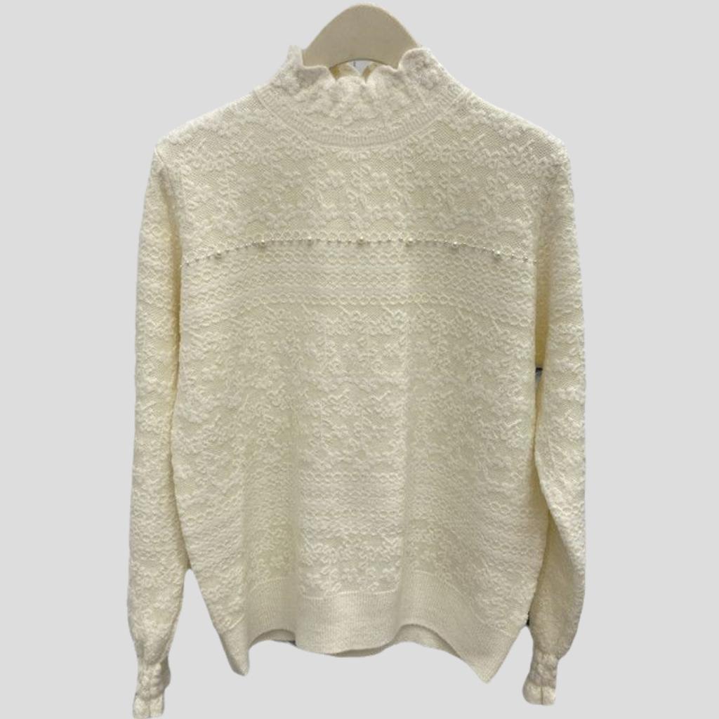 Women's Jacquard Knit Sweater Autumn Winter Soft Warm Beads Slim-fit Pullover Knit Top Stretch Knit Sweater