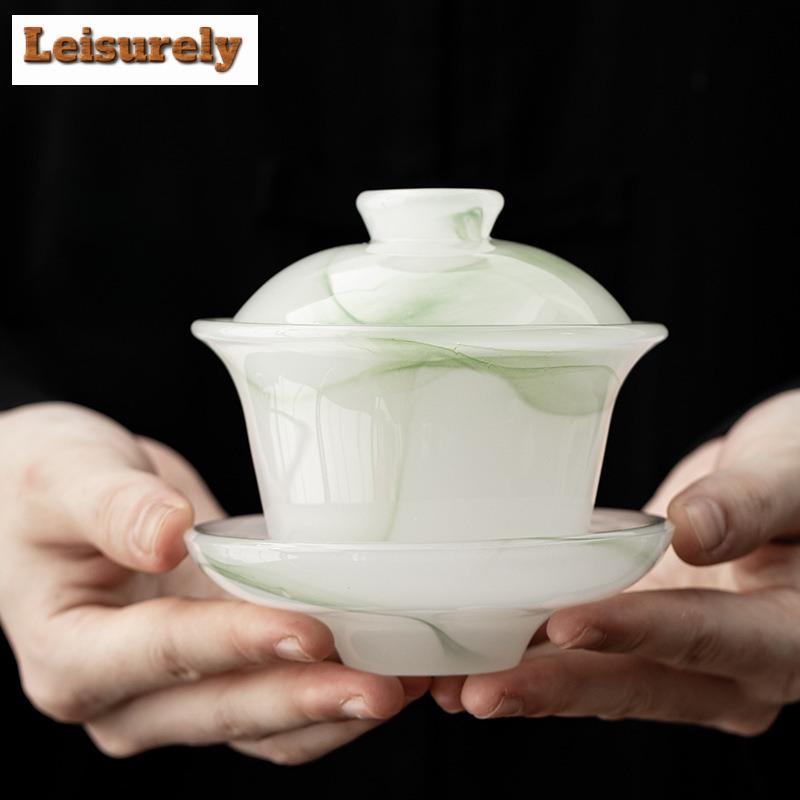 170ML Ancient Method Azure Stone Gaiwan Vintage Three Piece Non Hot Tea Tureen Household Tea Brewing Cover Bowl Drinkware Craft