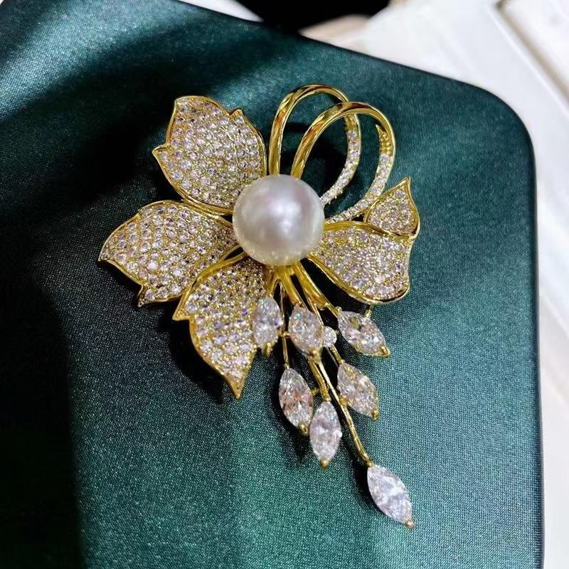 Kadınlar İçin Moda Yapay Elmas Çiçekler İmitasyon İnci Broşlar Giyim Kaban Takı Aksesuarları Hediyeler