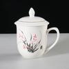 Meilan bamboo chrysanthemum ceramic teacup household large-capacity water cup with lid office meeting cup gift cup set lettering