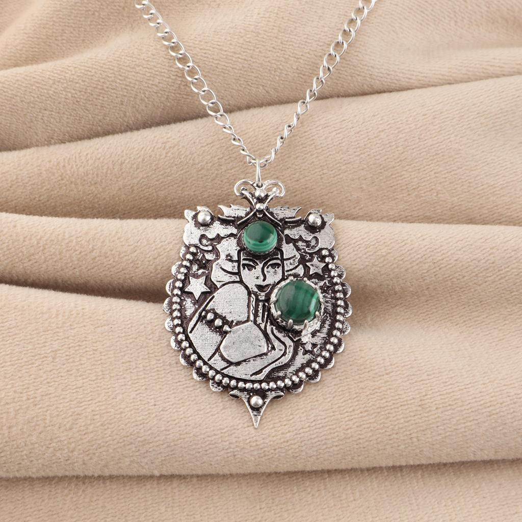 Natural Malachite Gemstone 925 Sterling Silver Jewelry Partywear Pendant 1.9" For Women