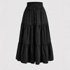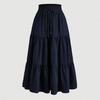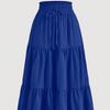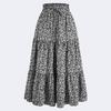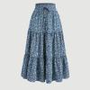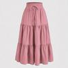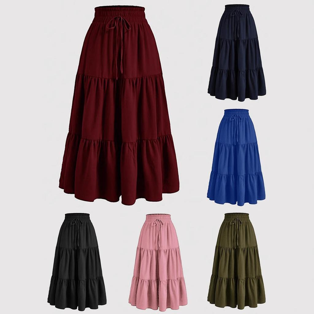 Kadın Modası Düz Renk Çiçekli Bağcıklı Elastik Bel Bol Uzun Etek