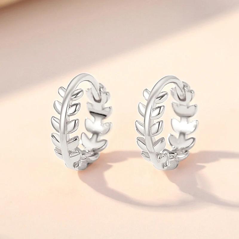 Huitan Dainty Leaf Hoop Earrings for Women Trendy Chic Daily Wearable Ear Accessories Girl Birthday Party Creative Gifts