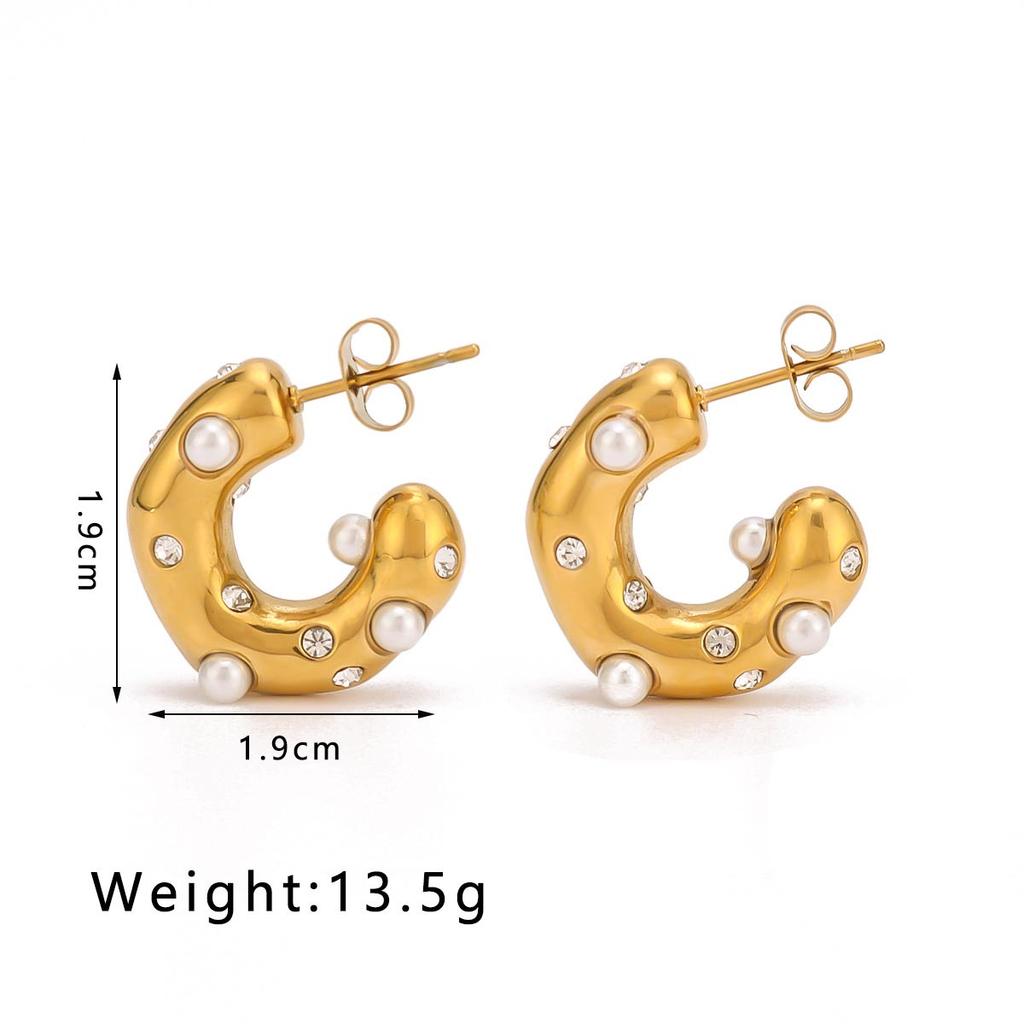 Pearl Zirconia Hoop Earrings For Women Gold Color Stainless Steel Rhienstone Stud