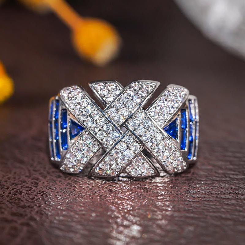 Huitan Novel Wide Cross Design Rings with White/Blue Cubic Zirconia Trendy Luxury Wedding Band Women Charms Accessories